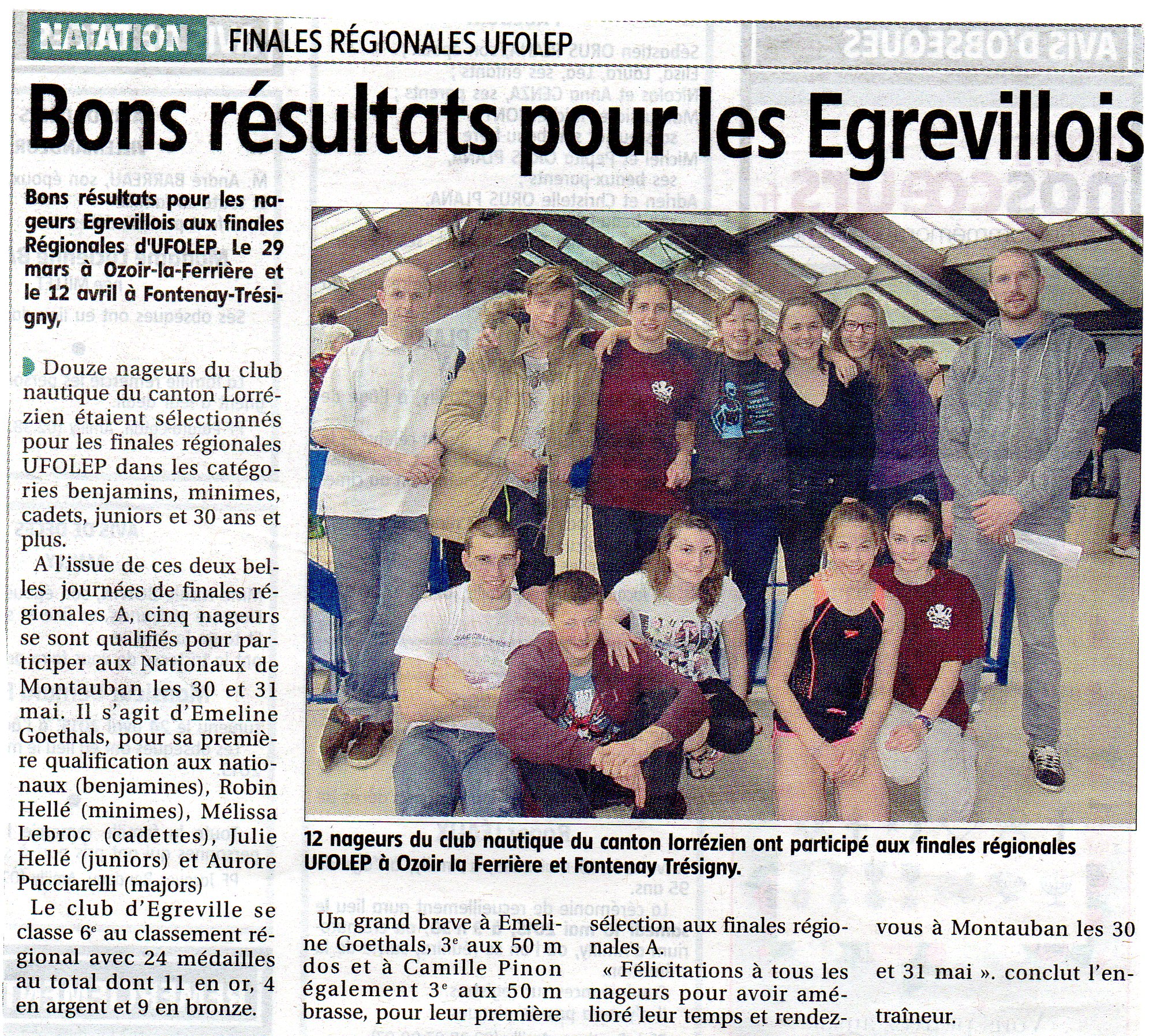 Article Eclaireur Finale Régionale A le 12 Avril 2015 à Fontenay-Trésigny